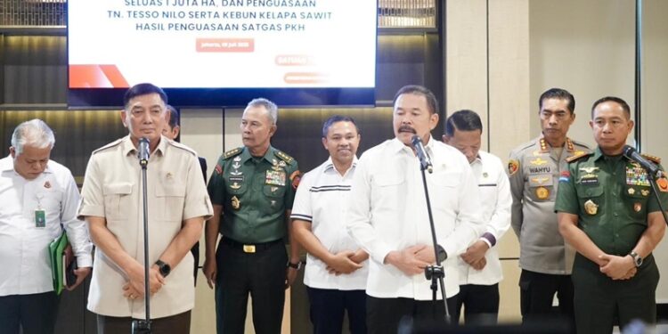 Sebanyak 394.547 hektare lahan yang sebelumnya dikuasai secara ilegal kini resmi dikembalikan ke negara. Hal ini disampaikan Panglima TNI, Jenderal Agus Subiyanto dalam Penyerahan Tahap III hasil penguasaan kembali kawasan hutan oleh Satuan Tugas Penertiban Kawasan Hutan (Satgas PKH) kepada PT Agrinas Palma Nusantara (Persero), di Gedung Kejaksaan Agung RI, Jakarta Selatan, Rabu, 9 Juli 2025.